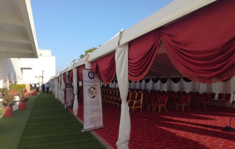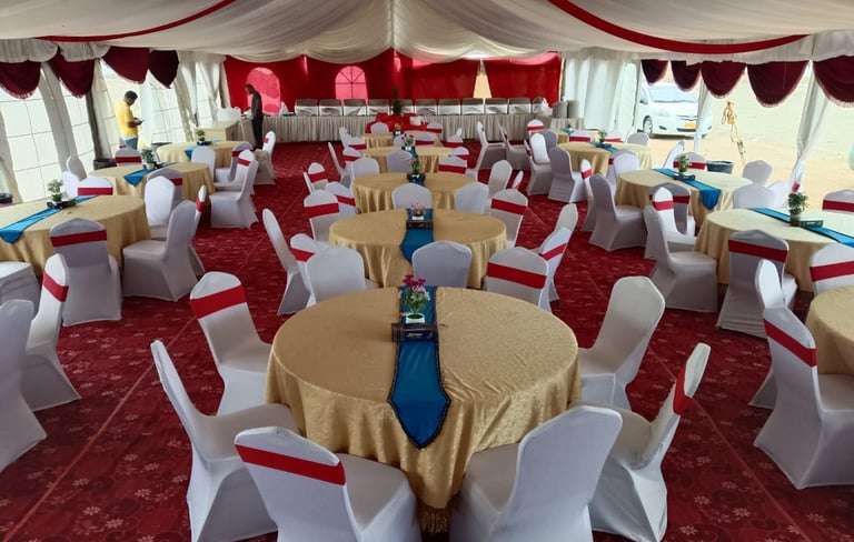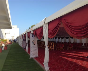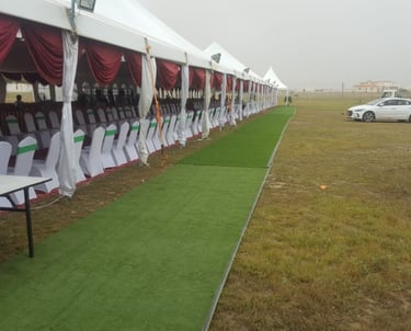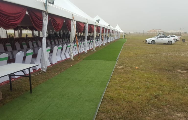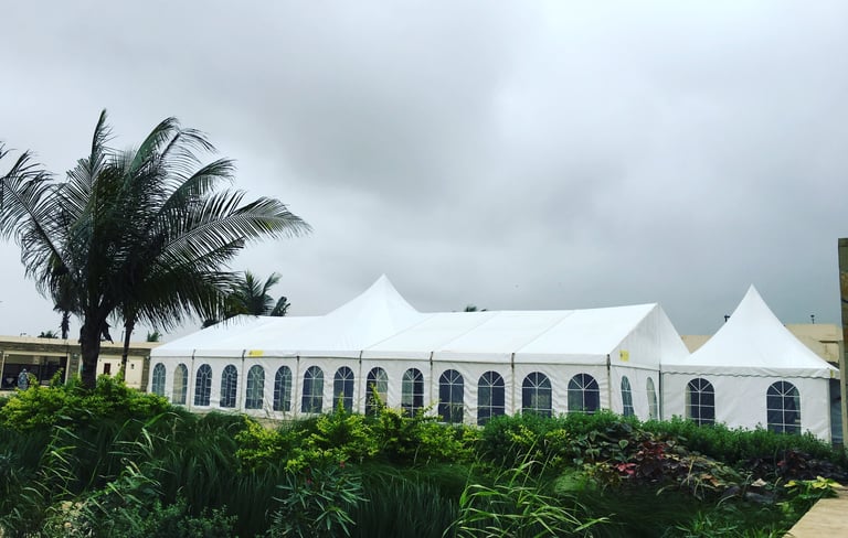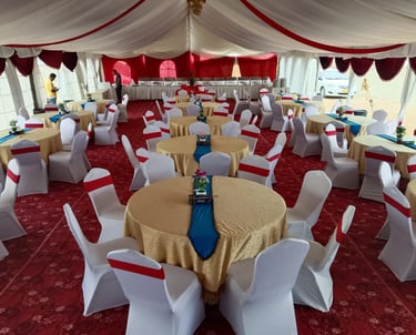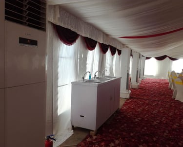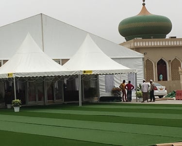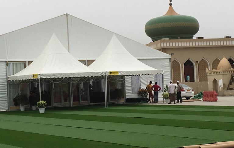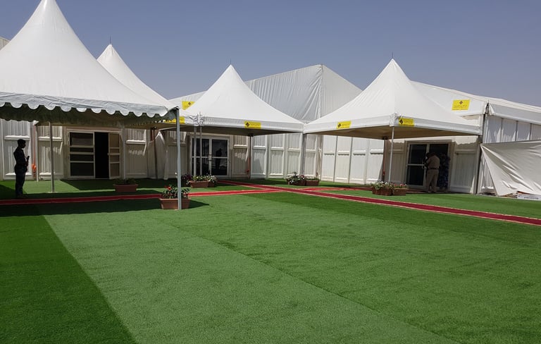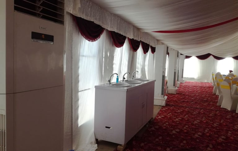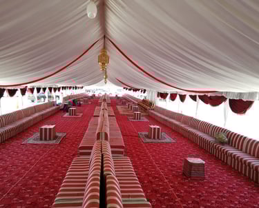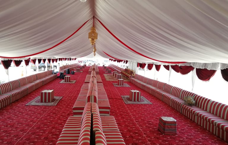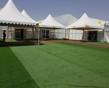 نحن متخصصون في توفير خيم للمناسبات الكبرى، مقدمين حلولاً مثالية لأي فعالية ضخمة تتطلب مساحات واسعة وتجهيزات متكاملة. خيامنا مصممة بأحدث التقنيات وهياكل متينة لضمان الأمان والمرونة، وتتحول إلى قاعات فخمة أو مساحات عرض رحبة. نوفر فيها كل ما يلزم من تكييف فعال، إضاءة متكاملة، توزيع طاقة كهربائية، أرضيات متنوعة، أنظمة صوت وفيديو، وديكورات داخلية، لتناسب حفلات الزفاف الضخمة، المؤتمرات، المعارض، أو المهرجانات. هدفنا هو جعل تنظيم فعالياتكم الكبرى تجربة سلسة، مبهرة، وناجحة بكل المقاييس