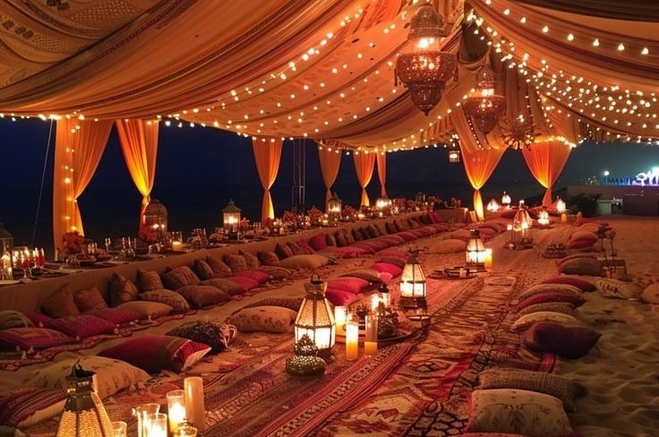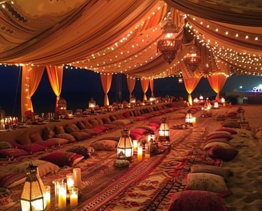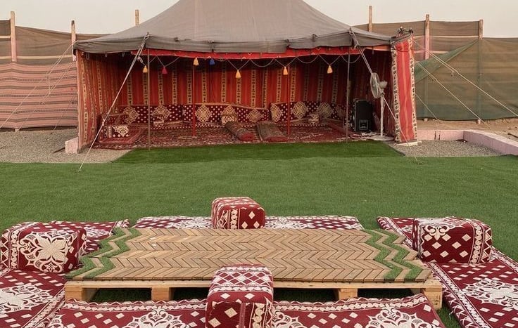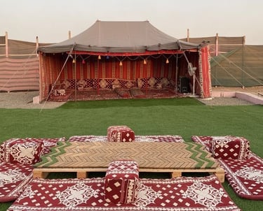 نوفر خيم بطابع عربي أصيل، تجمع بين عراقة التراث وجمال التصميم لتقديم تحفة فنية تروي قصص الكرم والضيافة، وتجسد الموروث الأصيل وأصالة الماضي. خياراتنا المتنوعة، من الخيام البدوية التقليدية إلى المجالس الفاخرة وخيام المناسبات ذات التصميم الشرقي، تتميز بتصميمات غنية بالتفاصيل، مواد عالية الجودة، ومرونة في الأحجام والتجهيزات لتلبية كافة احتياجاتكم. دعوا خيامنا تضفي لمسة من الأصالة والفخامة على مناسبتكم، وتحولها إلى تجربة استثنائية لا تُنسى.