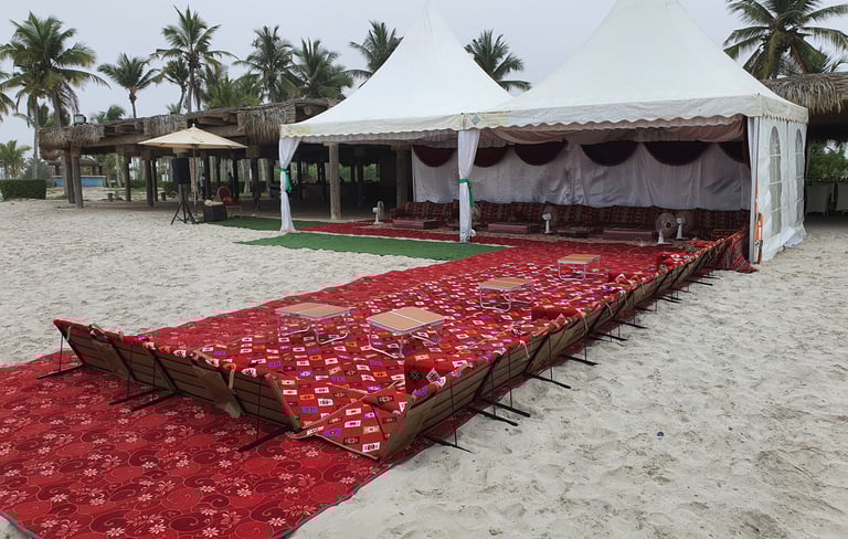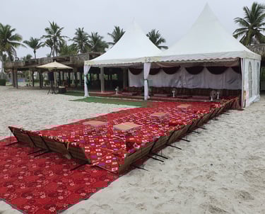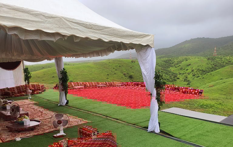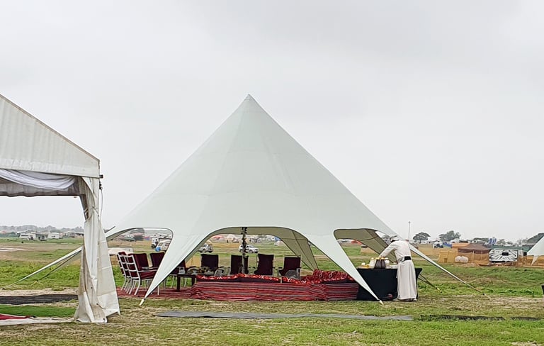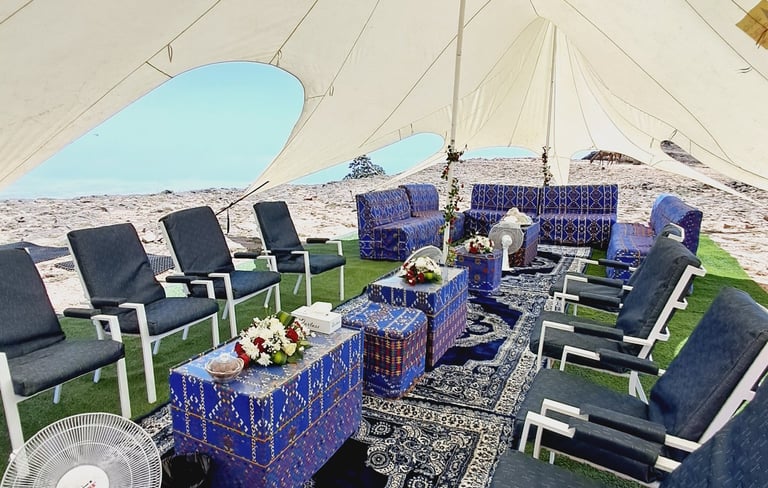 خيام المناسبات الخاصة عندنا تجمع بين الخصوصية والفخامة بطابع عصري أنيق. نوفر مساحات مغلقة بالكامل تضمن الراحة والأمان، مع إمكانية تخصيص التصميم حسب ذوقك. من التكييف والإضاءة، إلى أنظمة الصوت والفيديو، والديكورات الراقية – كل شيء مُجهز لخلق أجواء مثالية لمناسباتك الخاصة مثل حفلات الزفاف، الخطوبات أو اللقاءات العائلية.